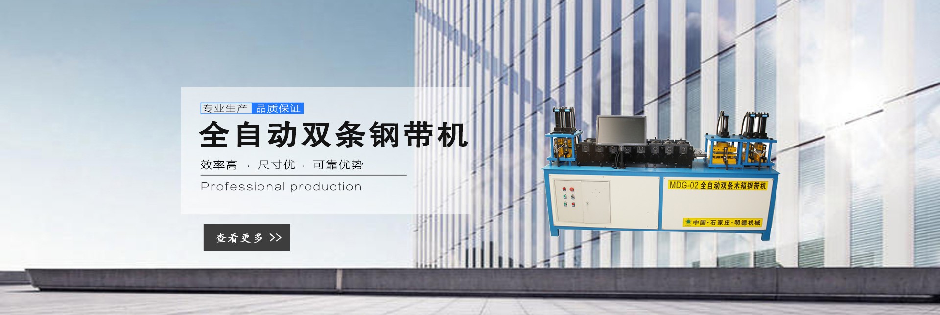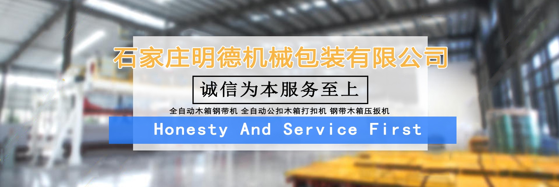 石家莊明德包裝機械有限公司是國內(nèi)專業(yè)生產(chǎn)木全自動木箱鋼帶機、半自動公母扣木箱打扣機、全自動雙排孔定長切斷機、美式托盤打釘機械、托盤刨槽機、倒角機、木包裝箱、木托盤的生產(chǎn)廠家。